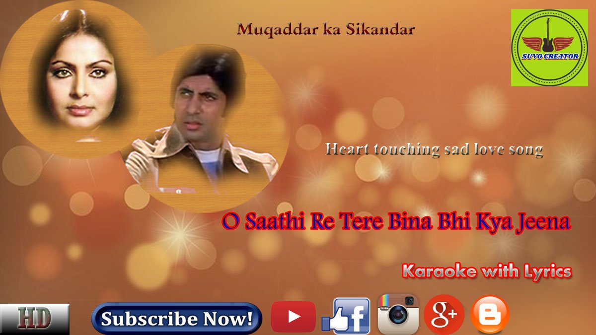 O Saathi Re Female With Lyrics ओ स थ र ग न क ब ल Muqaddar Ka Sikandar Rekha Amitabh Youtube - Tere bina bhi kya jeena.
