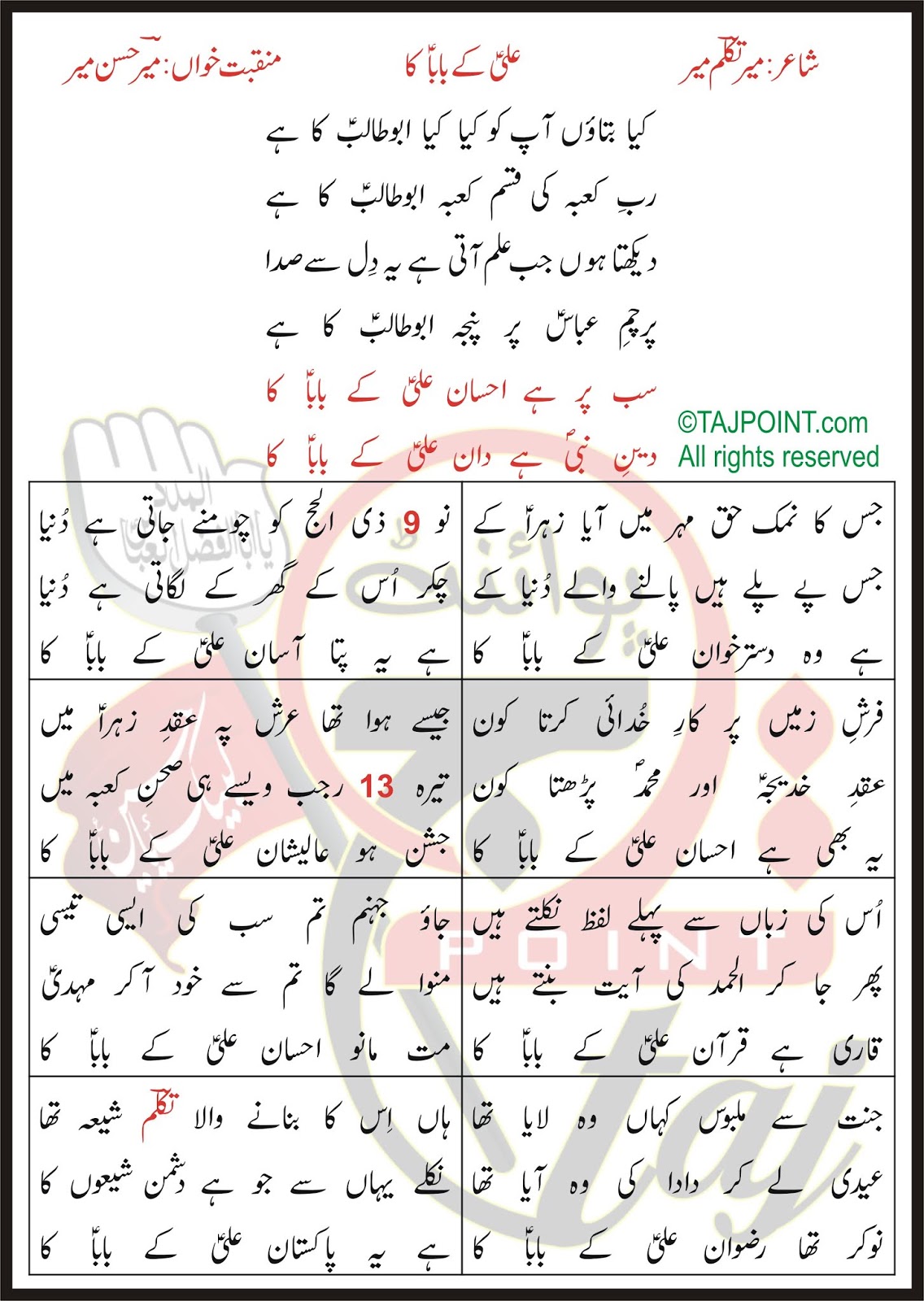 Ali Ke Baba Ka Kya Bataon Aap Ko Kya Kya Abu T Lyrics Mir Takallum Mir - Sardar zeeshan khan (rj shan ali).