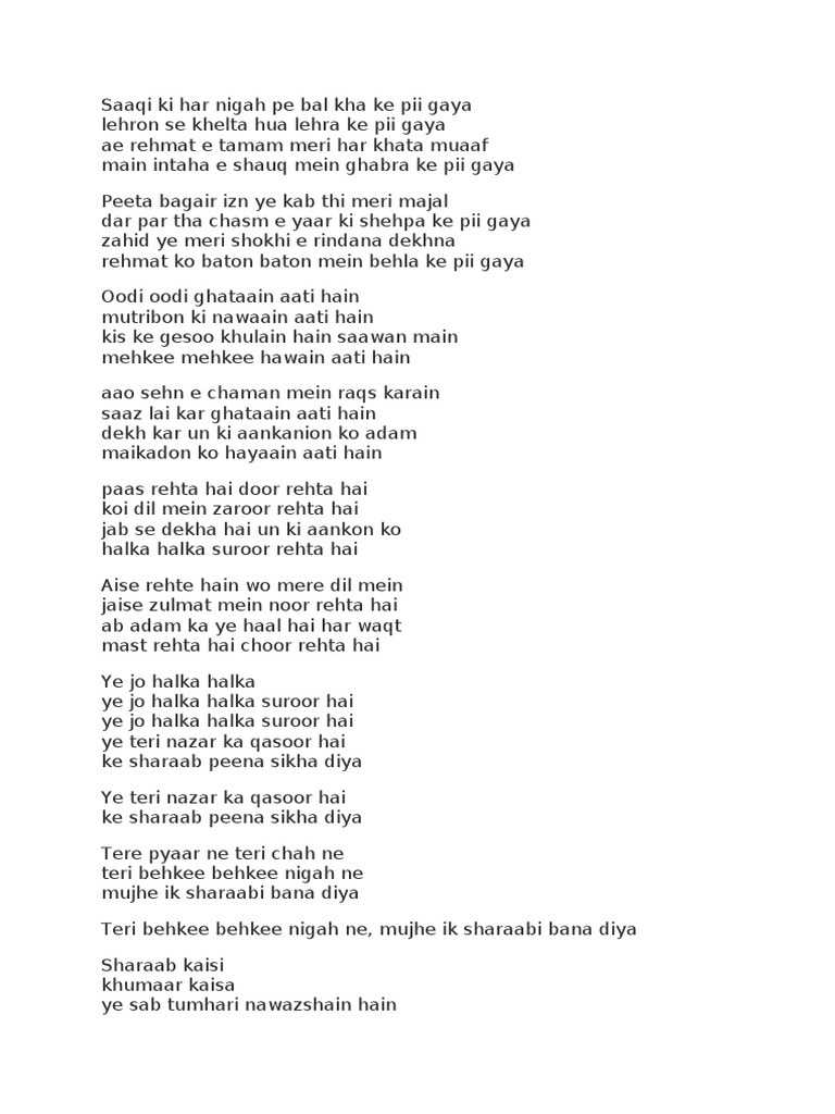 Sharab Peena Sikha Diya Lyrics : Ke sharaab peena sikha diya. Sharab Peena Sikha Diya Lyrics - Sharab peena sikha diya + halka halka suroor.